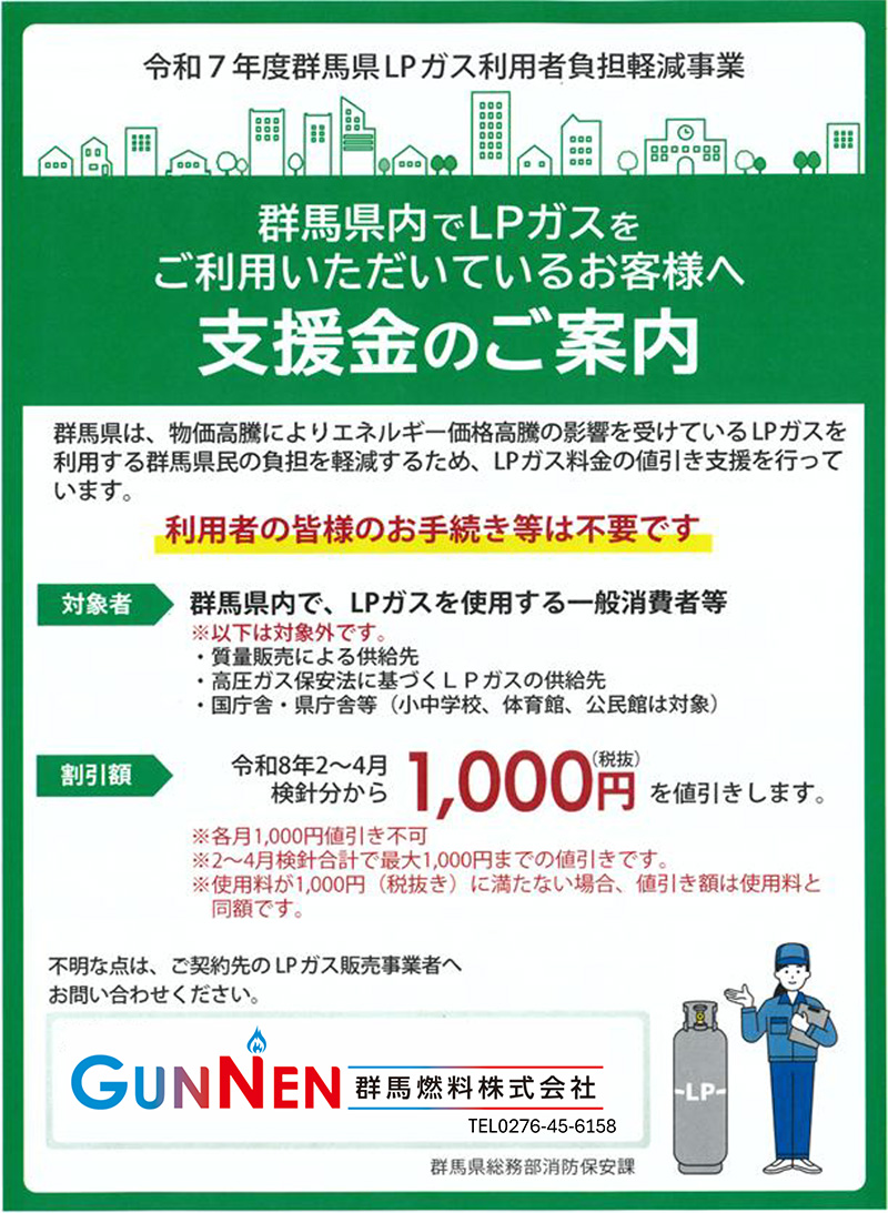 群馬県でLPガス利用中のお客様へ LPガス利用者負担軽減事業のご案内